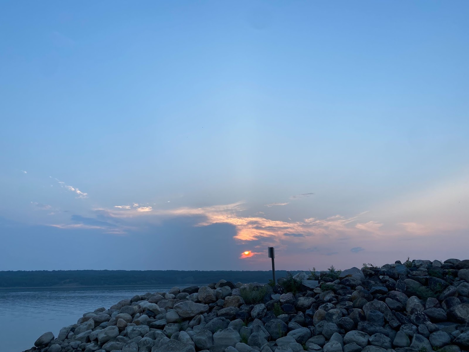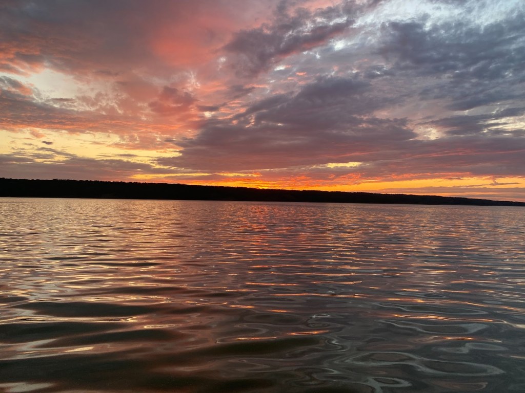 Sunset from the boat launch at Prairie Lake Lodge.